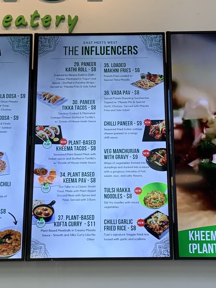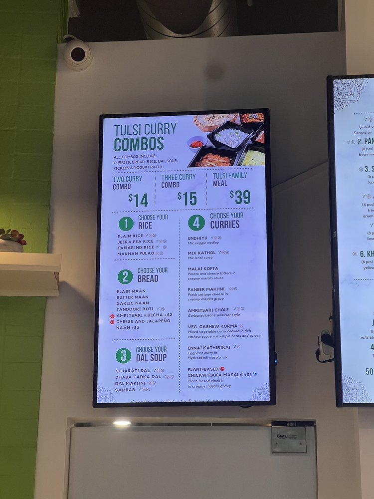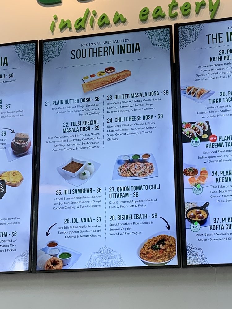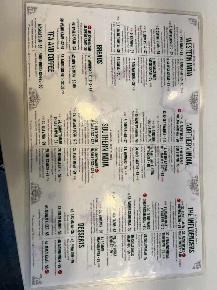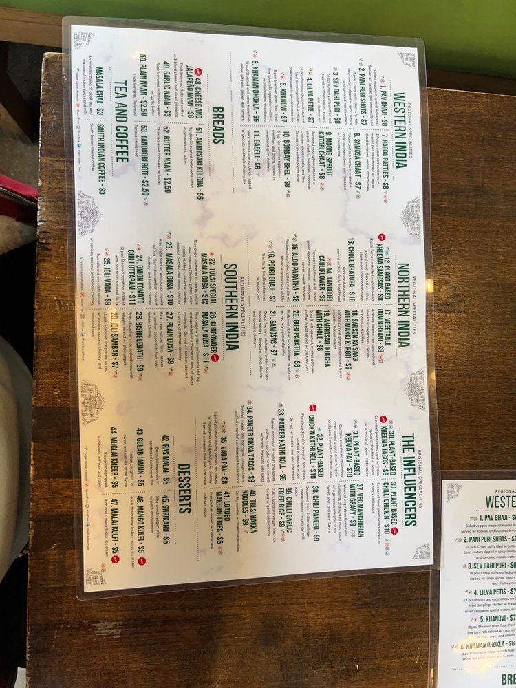 Introducing the menu at Tulsi Indian Eatery - DTLA, where you can indulge in a variety of flavorful dishes. From their popular Two and Three Curry Combos to the tantalizing Street Bites like Pani Puri Shots and Vada Pav, there is something for everyone to enjoy. Regional Entrees like Chole Bhature and Paneer Tikka Tacos showcase the rich and diverse flavors of Indian cuisine. Customers rave about the exquisite appetizer menu, showcasing the restaurant's dedication to providing a wide range of options. The modern and expansive space, along with attentive and caring staff, create a welcoming dining experience. While some minor issues with ordering have been noted, the overall quality of the food shines through, making Tulsi Indian Eatery a must-visit for authentic Indian cuisine in DTLA.